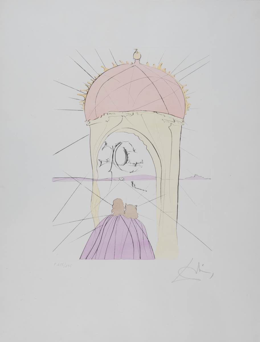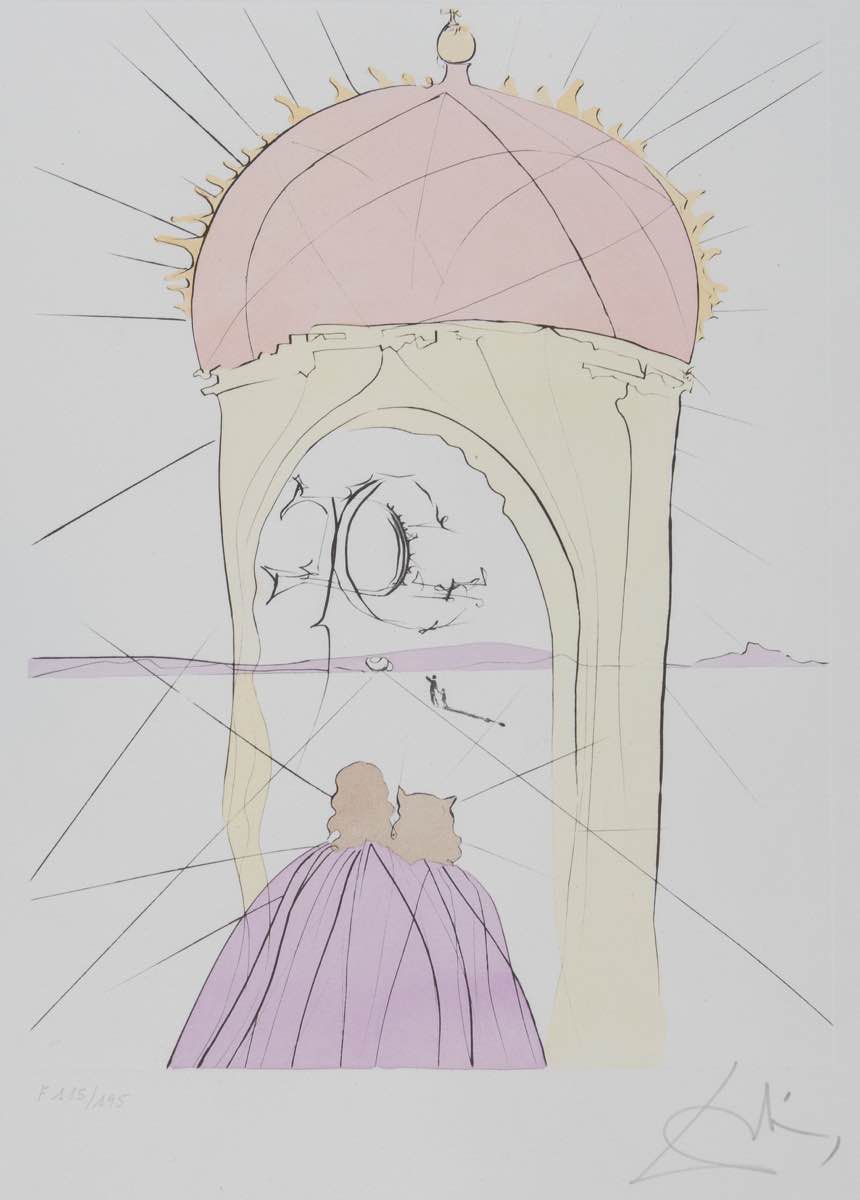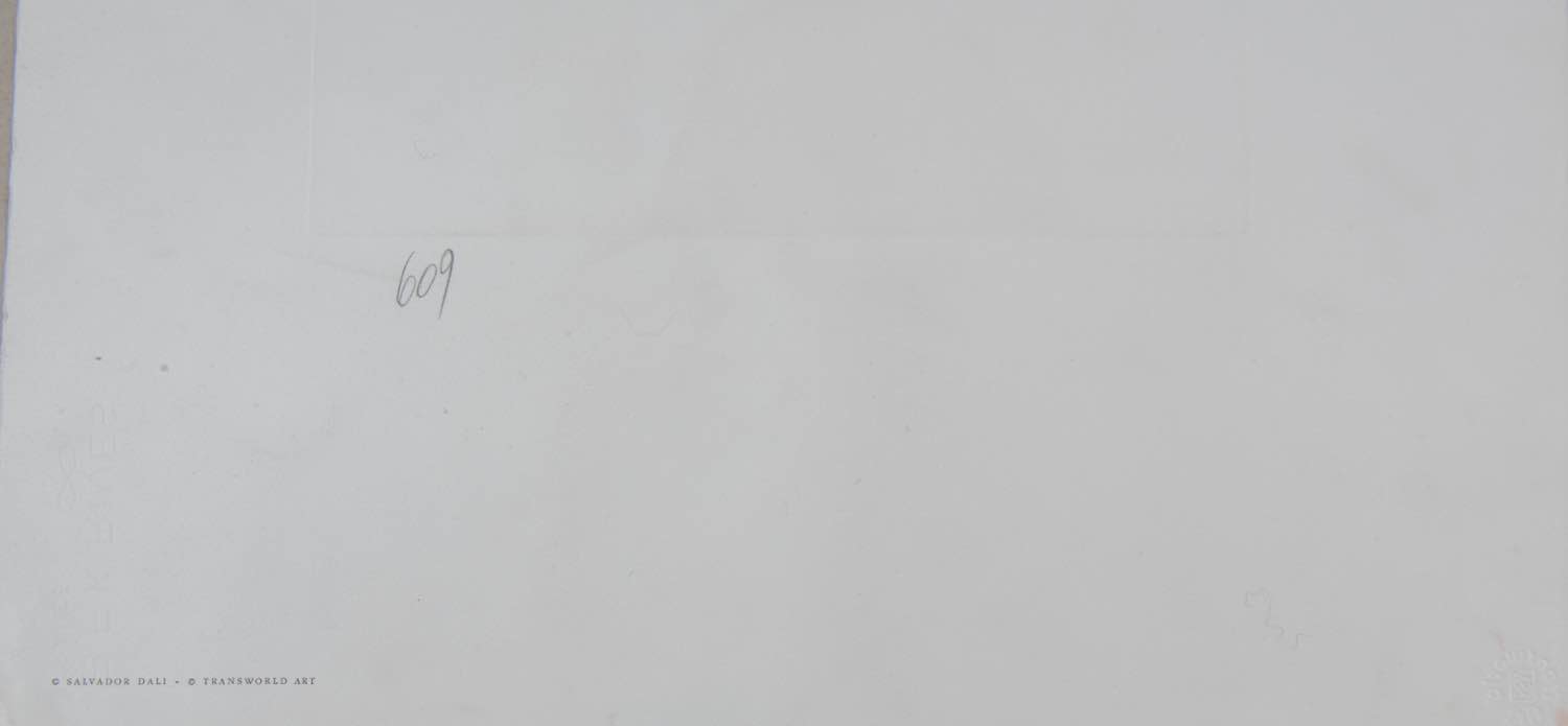 Acquaforte a colori su carta, firmata in basso a destra Dalì, numero di tiratura in basso a sinistra F 185/195, reca timbro a secco Transworld Art, Foglio H cm 65.5x50 - Lastra H cm 40x30