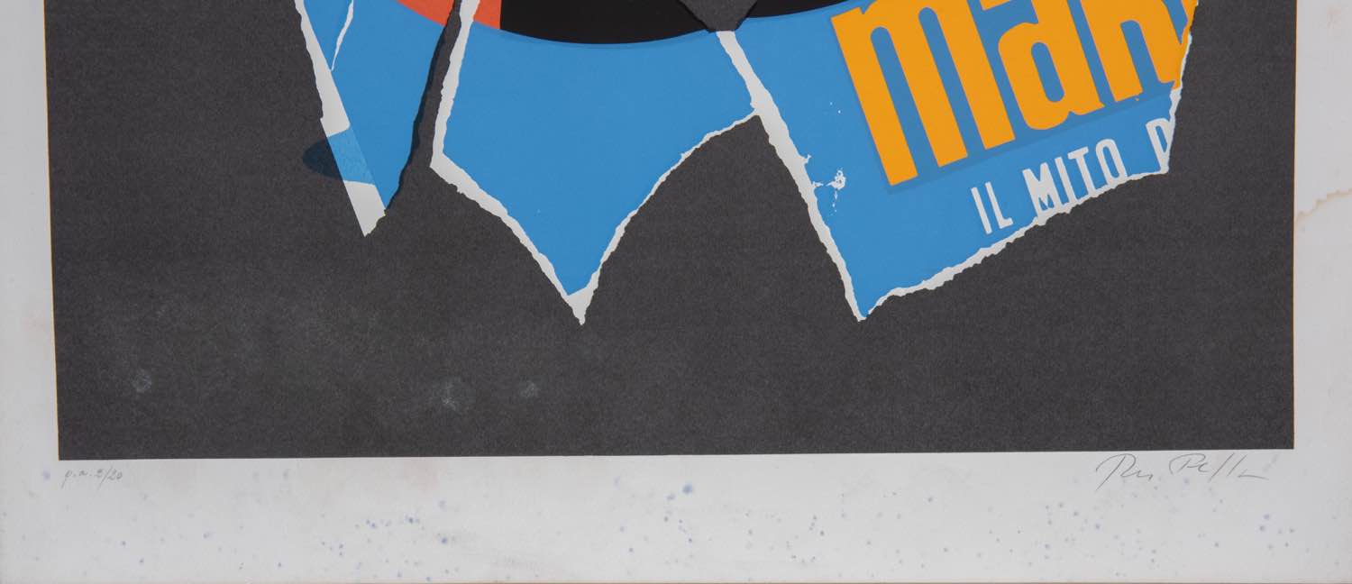 Litografia a colori su carta, firmata in basso a destra Mimmo Rotella, esemplare in basso a sinistra pa 2/20, Foglio H 85x63.5 - Lastra H cm 76x57.5
