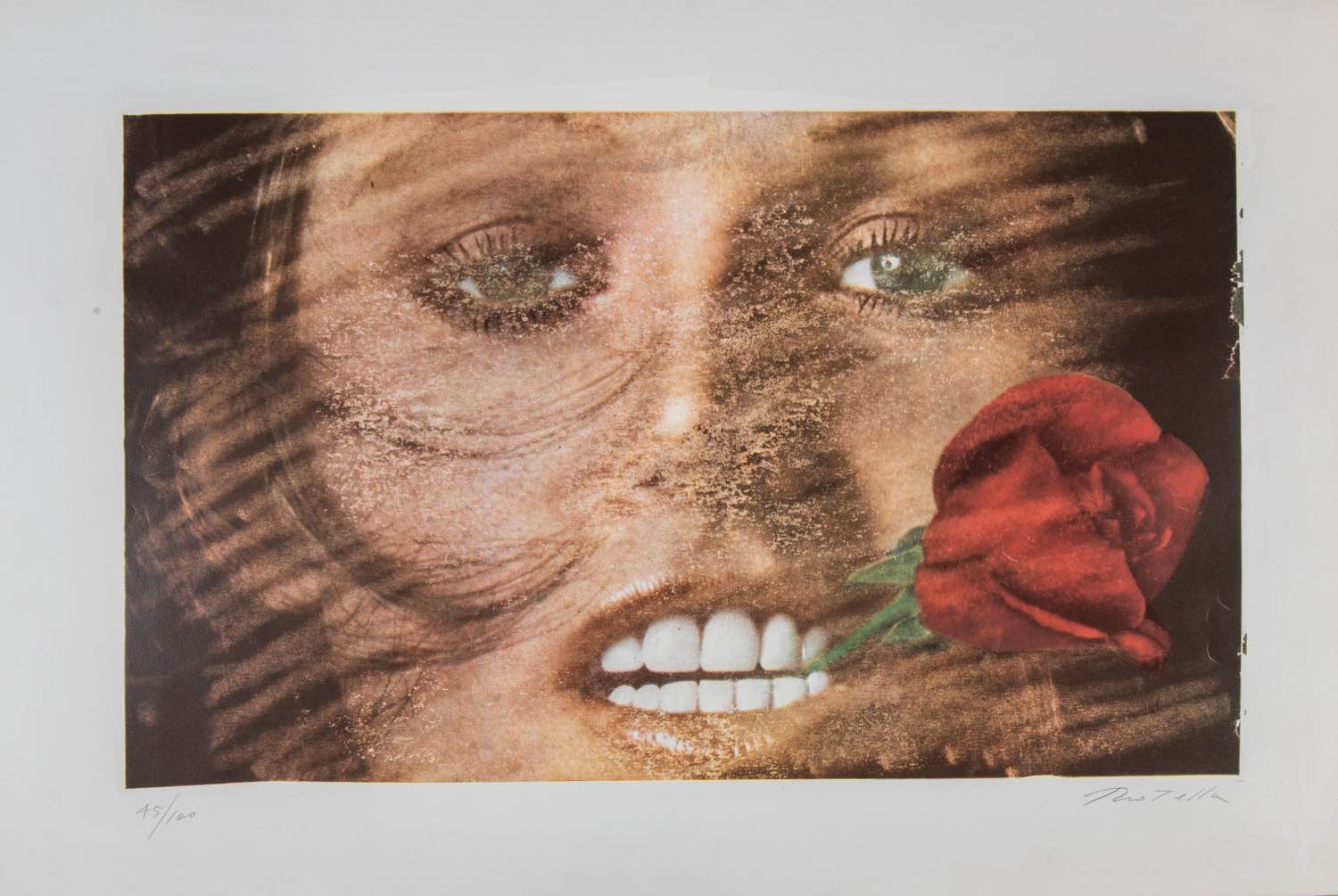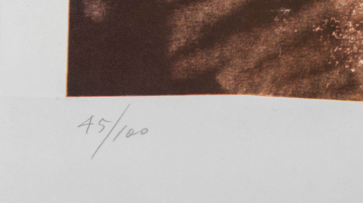 Litografia a colori su carta, firmata in basso a destra Rotella, numero di tiratura in basso a sinistra 45/100, Foglio H cm 69x100 - Lastra H cm 49x80