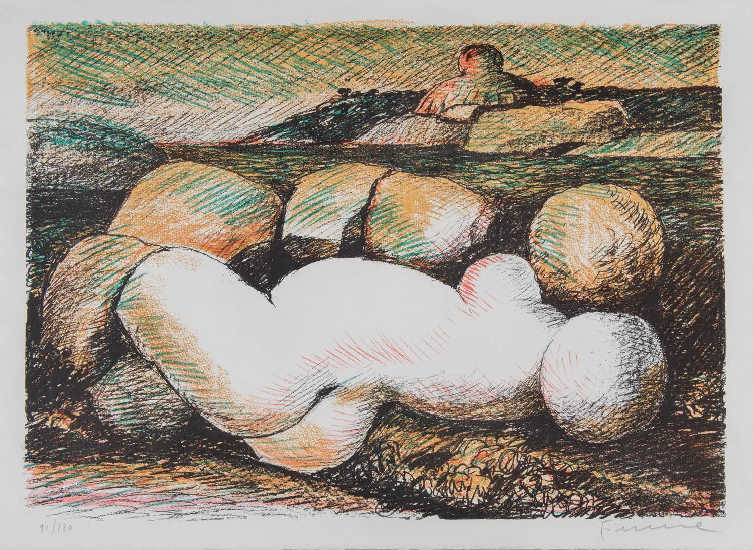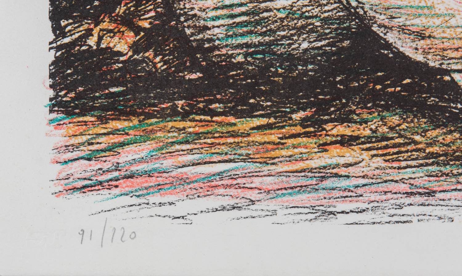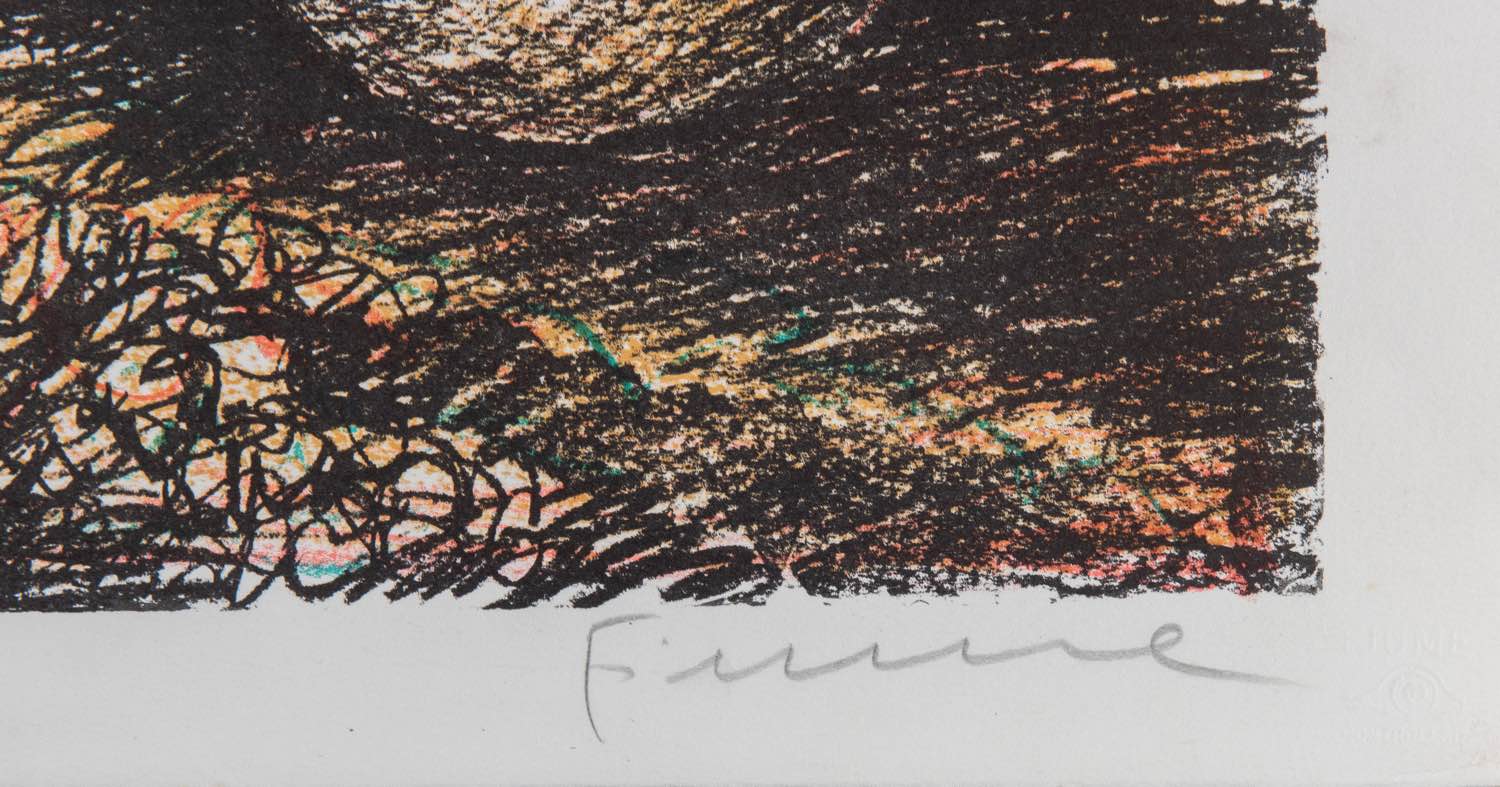 Litografia a colori su carta, firmata in basso a destra Fiume, numero di tiratura in basso a sinistra 91/120, reca timbro ST, Foglio H cm 56.5x76