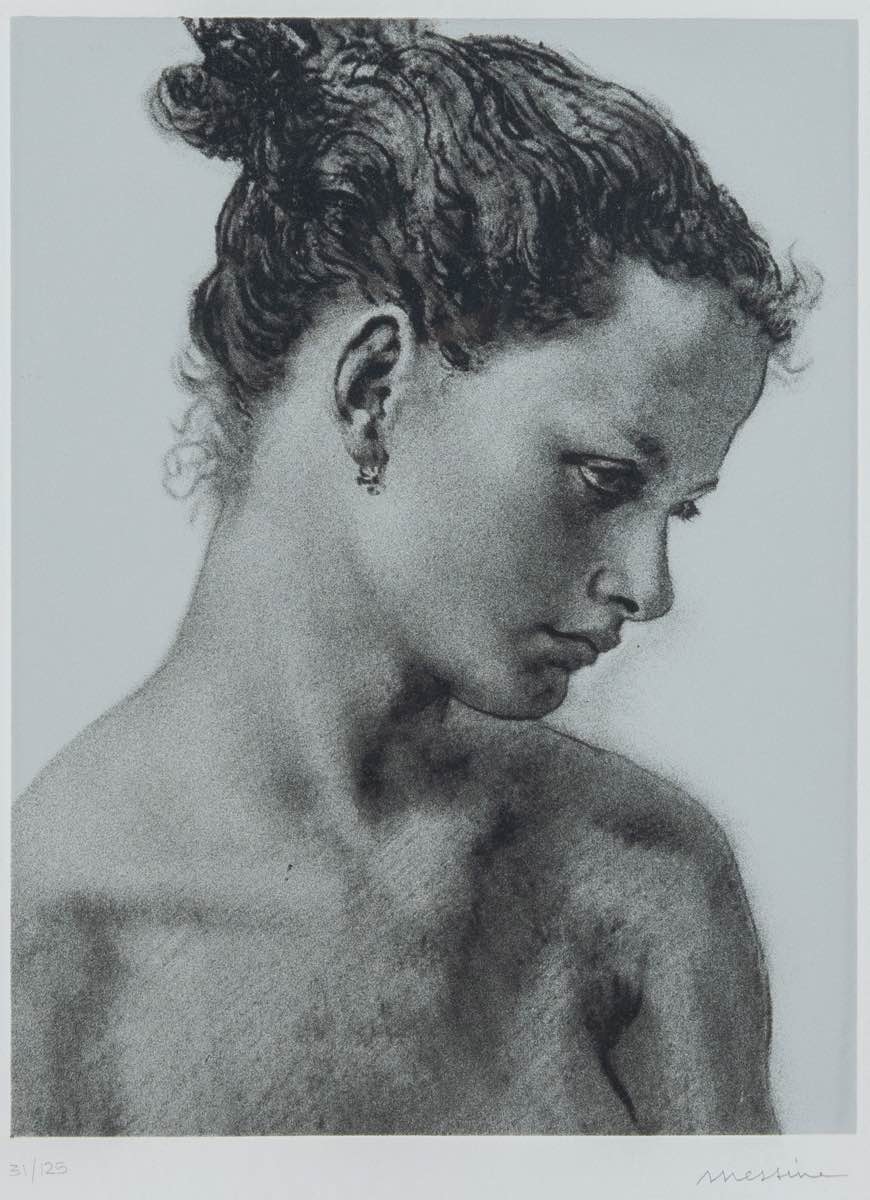 Litografia su carta, firmata in basso a destra Messina, numero di tiratura in basso a sinistra 31/125, Foglio H cm 69x49 - Lastra H cm 28.5x21.5