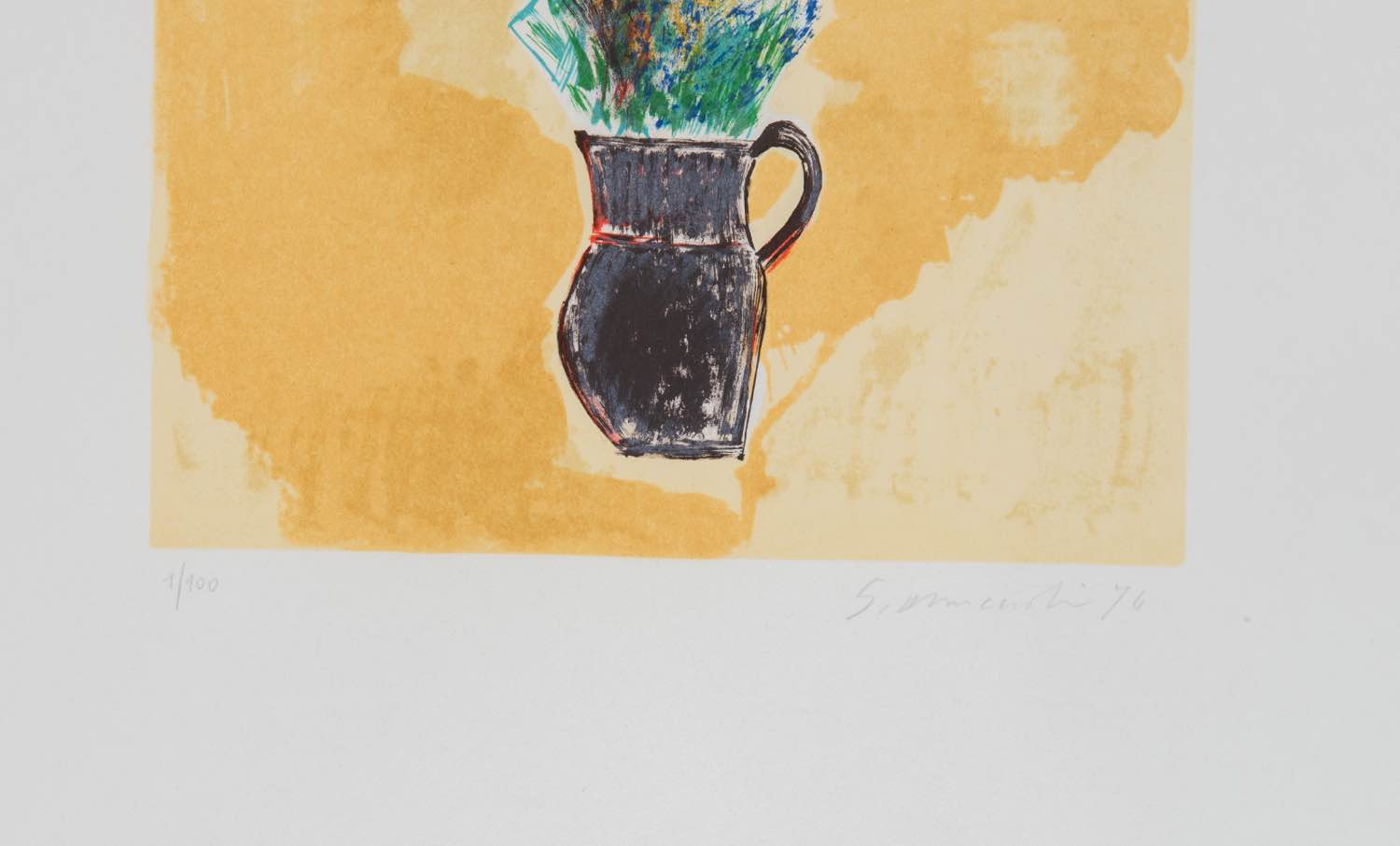 Litografia a colori su carta, firmata e datata in basso a destra G. Omiccioli 74, numero di tiratura in basso a sinistra 1/100, Foglio H cm 62x50 - Lastra H cm 36x25.5