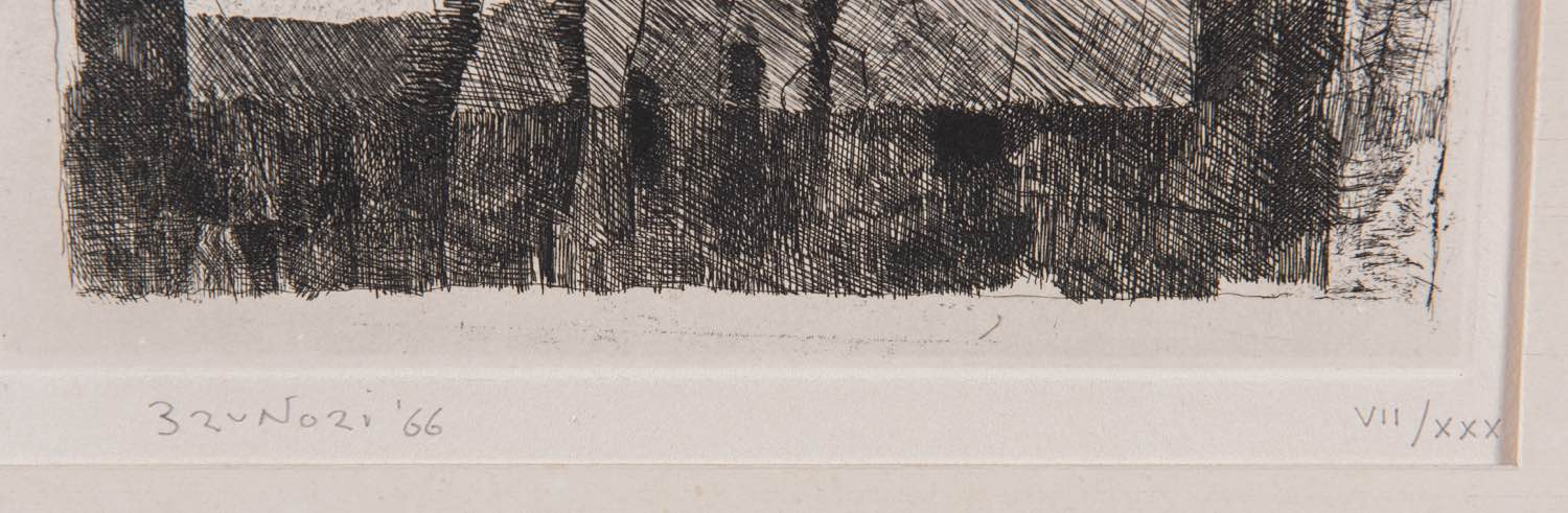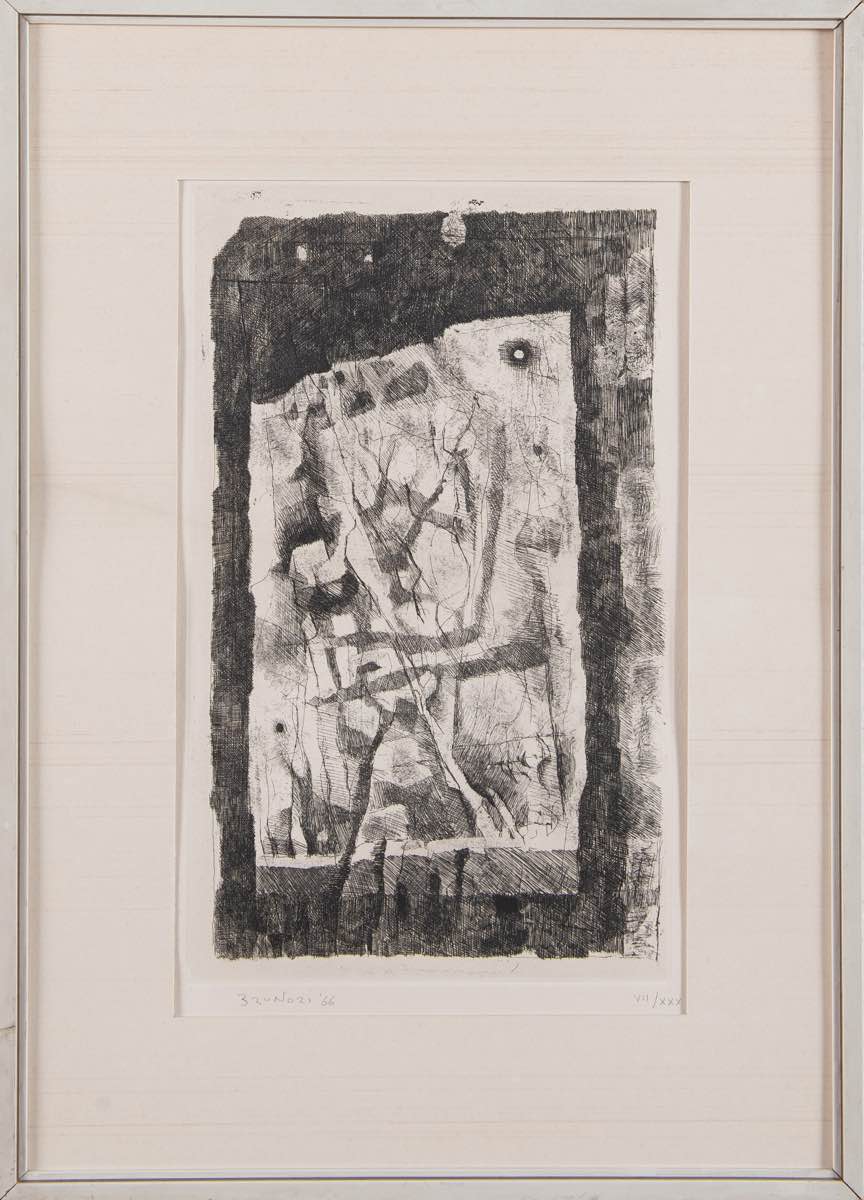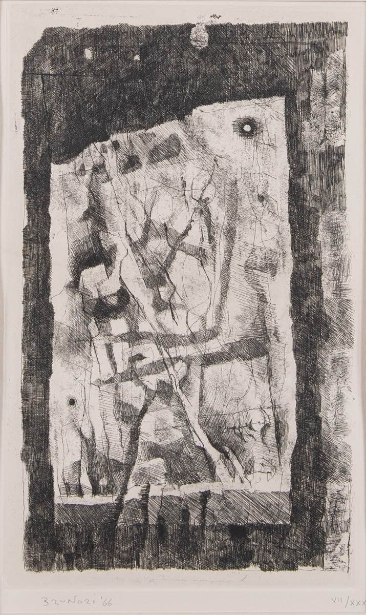 Litografia su carta, firmato e datato in basso a sinistra Brunori 66, numero di triatura in basso a destra VII/XXX, Lastra H cm 34x21