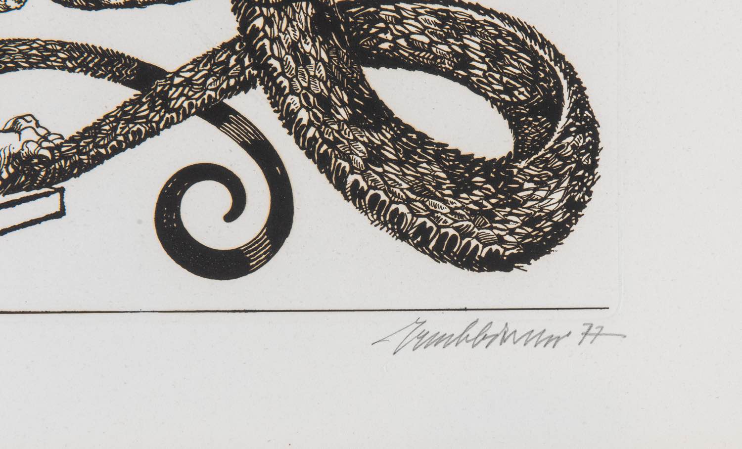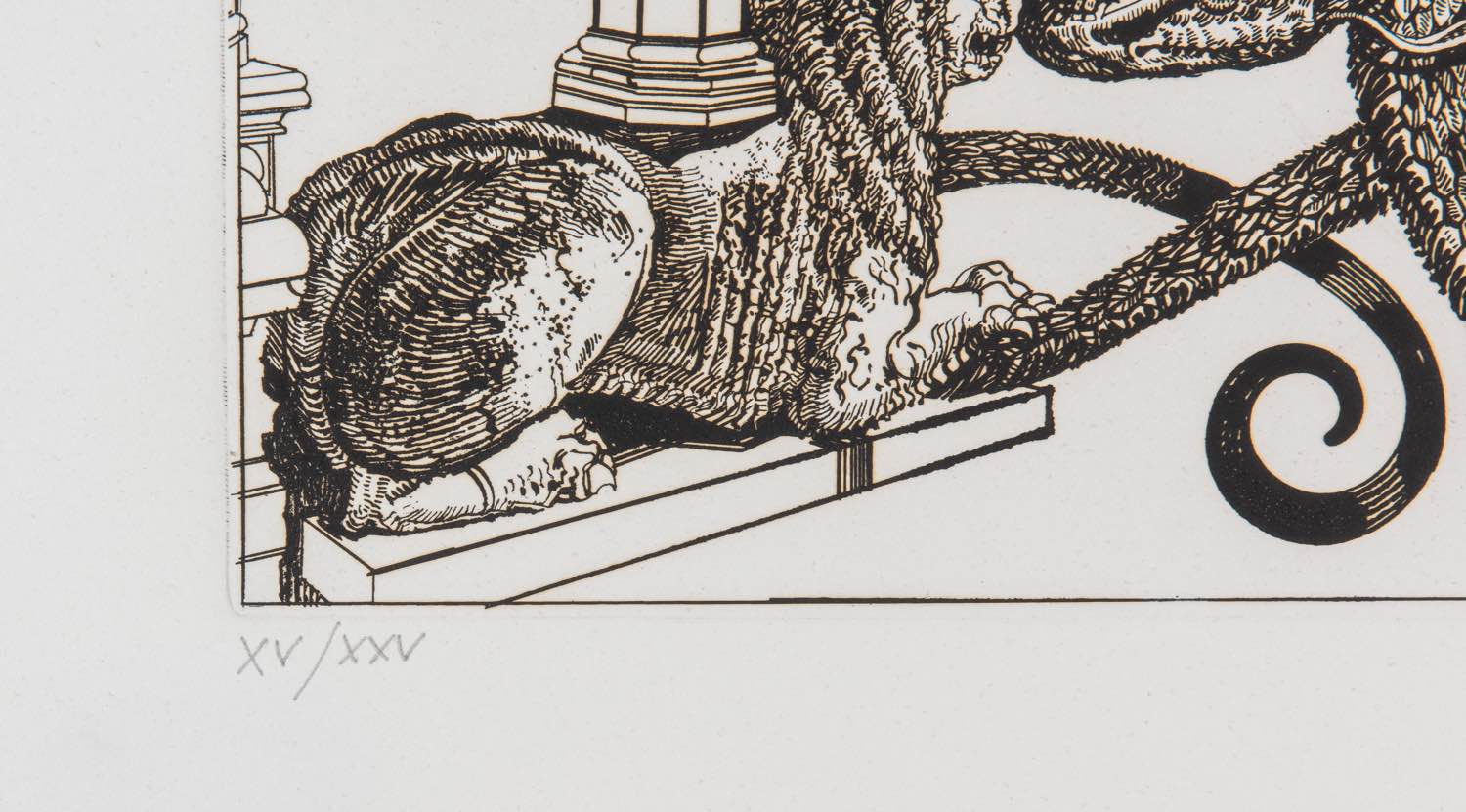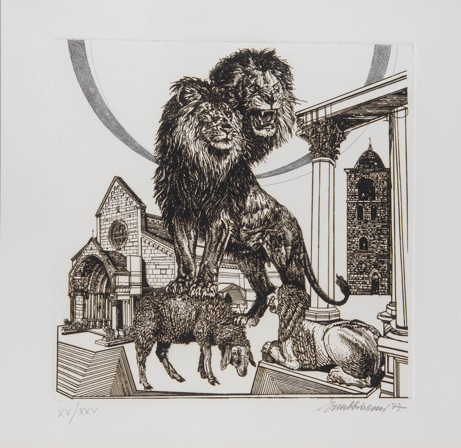 Cartellina artistica, copia numero XV, contenente tre acqueforti, edizione L’Astrogallo - Ancona, H cm 44x44