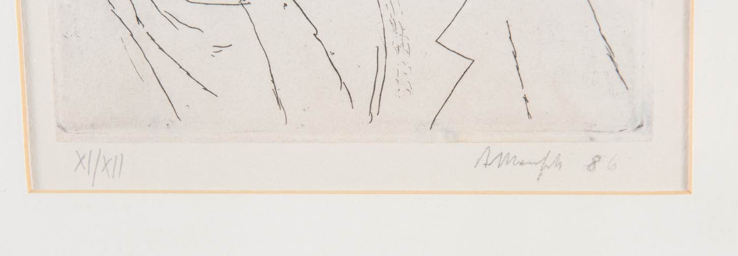 Litografia su carta, firmata e datata in basso a sinistra A Manfredi 86, numero di tiratura in basso a destra XI/XII, Lastra H cm 25x20