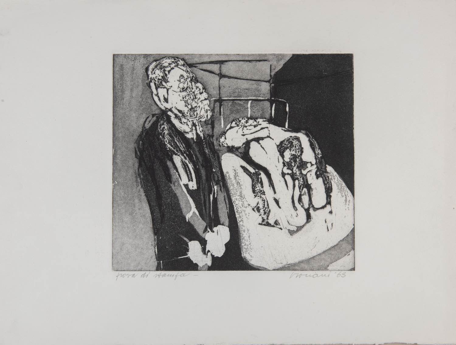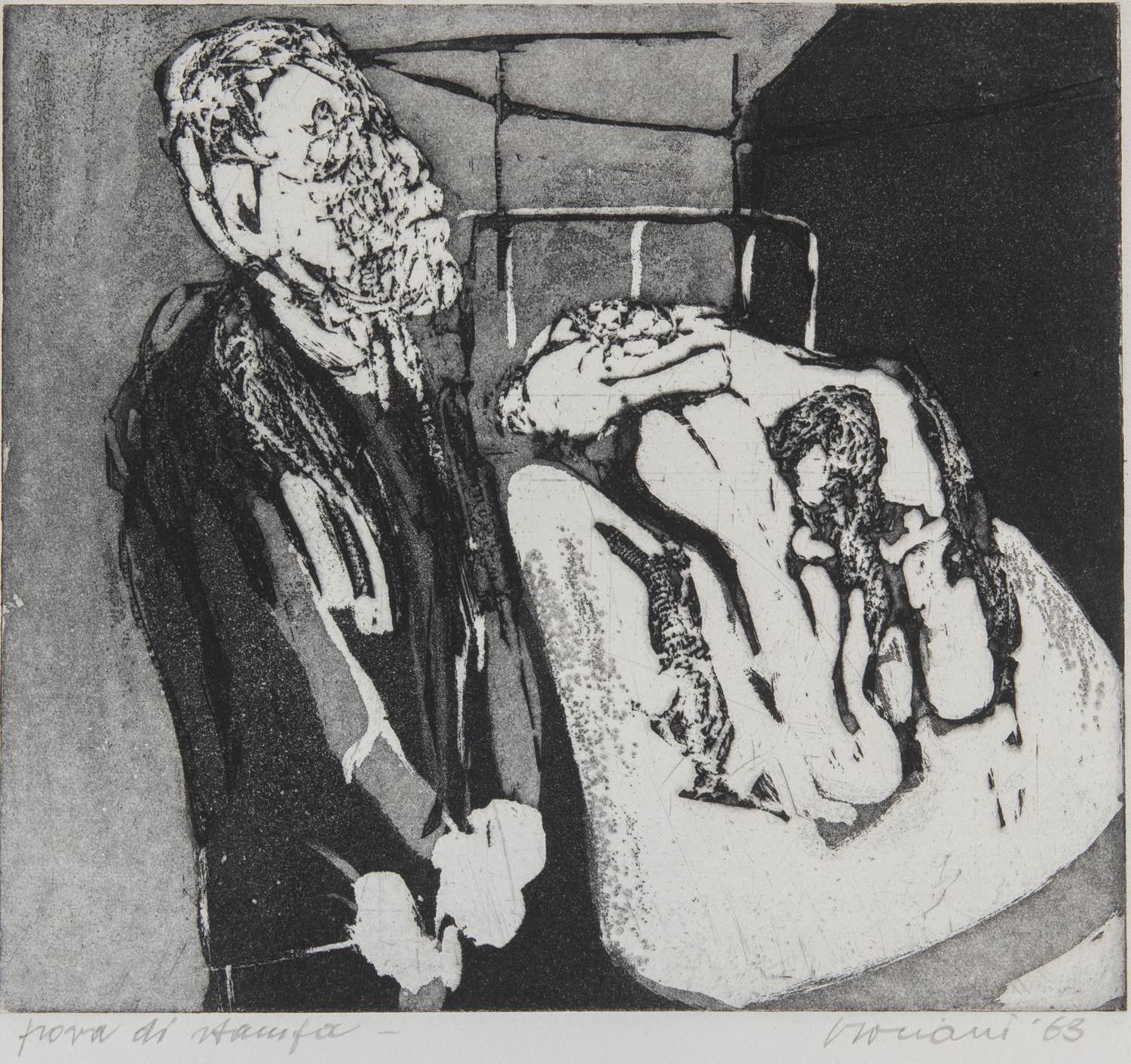 Litografia su carta firmata e datata in basso a destra Crociani 63, esemplare in basso a sinistra prova di stampa, Lastra H cm 24.4x27.5
