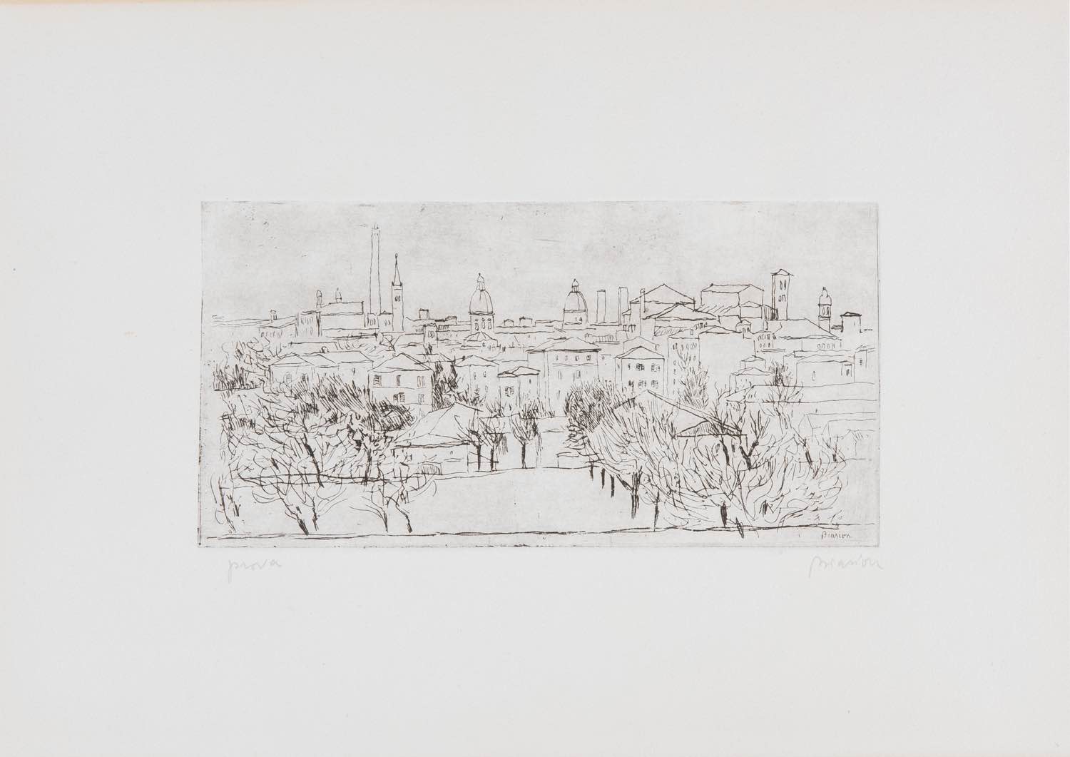Incisione su carta, firmata in basso a destra Biasion, esemplare in basso a sinistra prova, Lastra H cm 10x19.5
