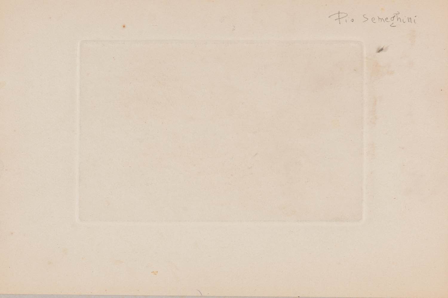 Incisione su carta, firma su lastra, Lastra H cm 12x20 - Foglio H cm 21.5x31.5 Bibliografia di riferimento: Pubblicata su catalogo Libreria Antiquaria Prandi - Reggio Emilia, '1968-69, tavola 52. Opera accompagnata da fotografia per autenticità con iscrizione 'P. Semeghini/acquaforte 1908'.