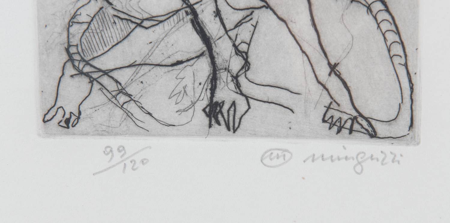 Litografia su carta, firmata in basso a destra Minguzzi, numero di tiratura in basso a sinistra 98/120, Foglio H cm 70x50 - Lastra H cm 18x12