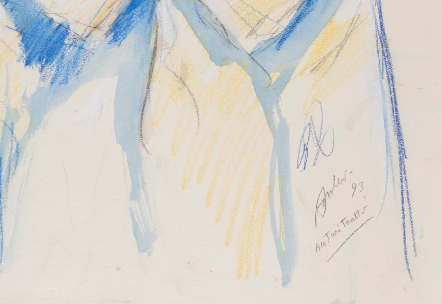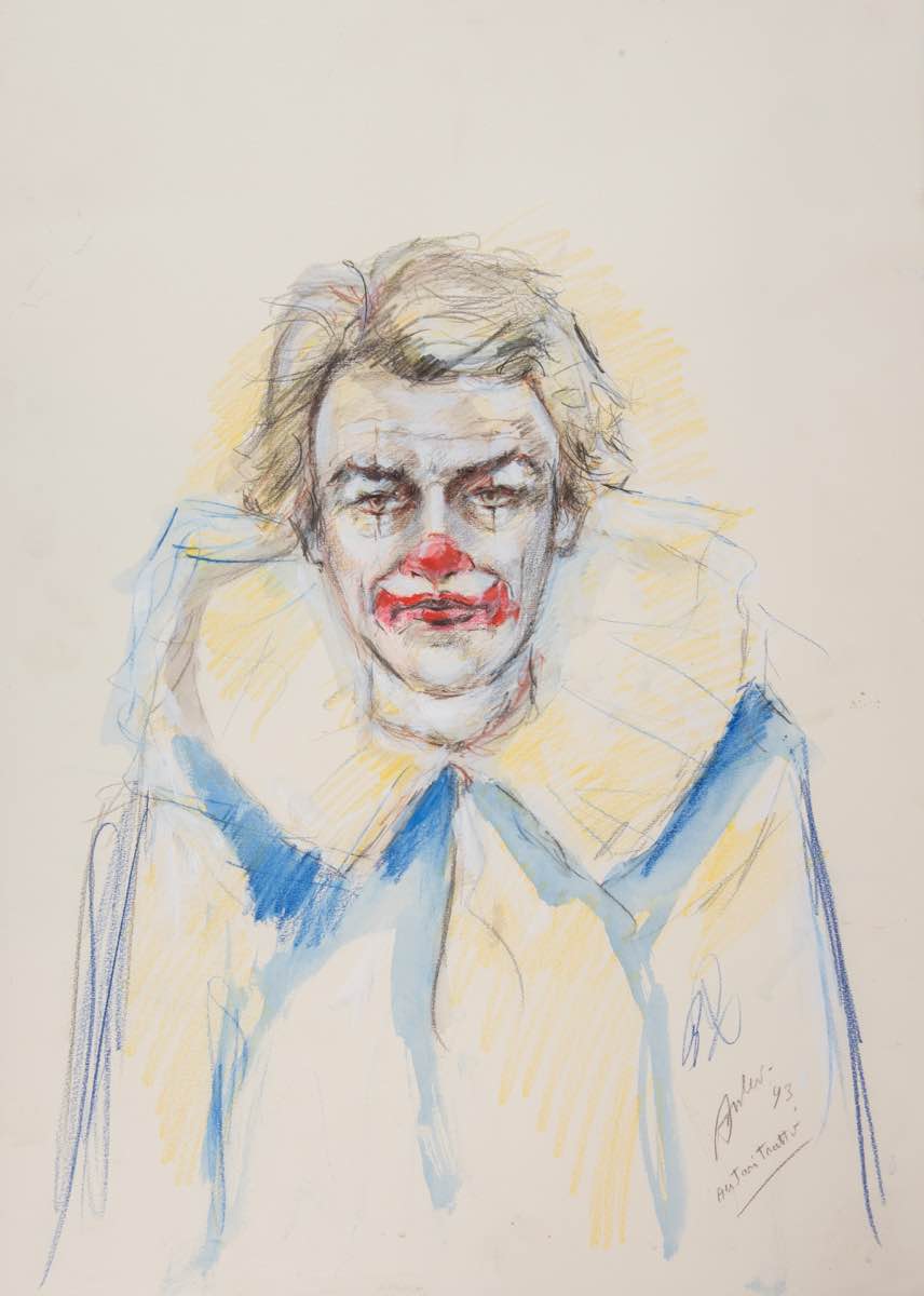 Litografia colorata a mano su carta, firmata, datata e titolata in basso a destra Anleri/93/Autoritratto, H cm 70x50