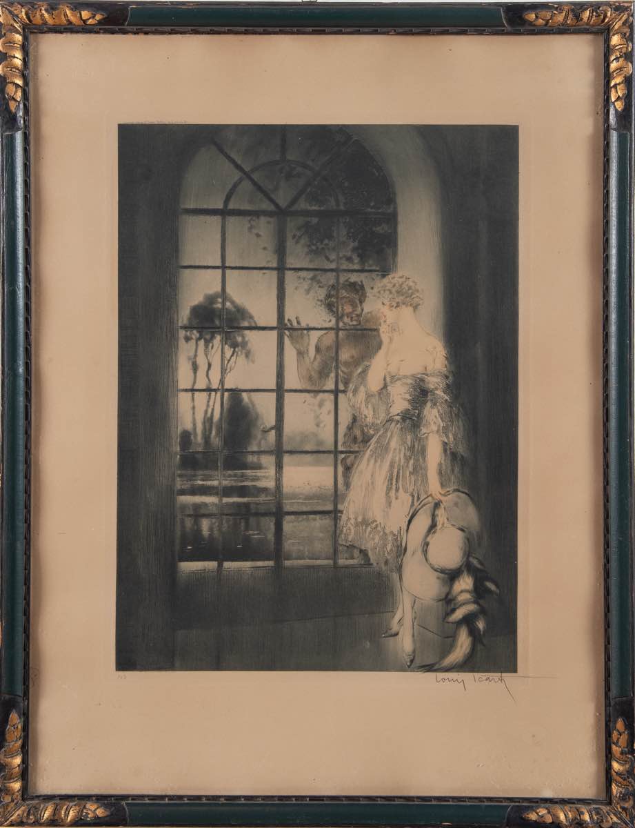 Acquaforte a colori su carta, firmata in basso a destra Louis Icart, al retro reca etichetta della Galleria Léon Smalle - Bruges (Belgio), Lastra H 49.5x36