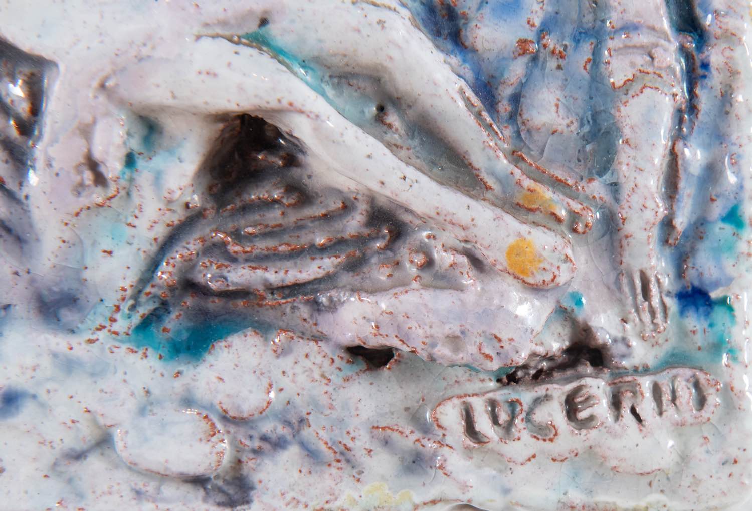 Terracotta decorata con smalti policromi, firmata in basso a destra Lucerni, H cm 22x15