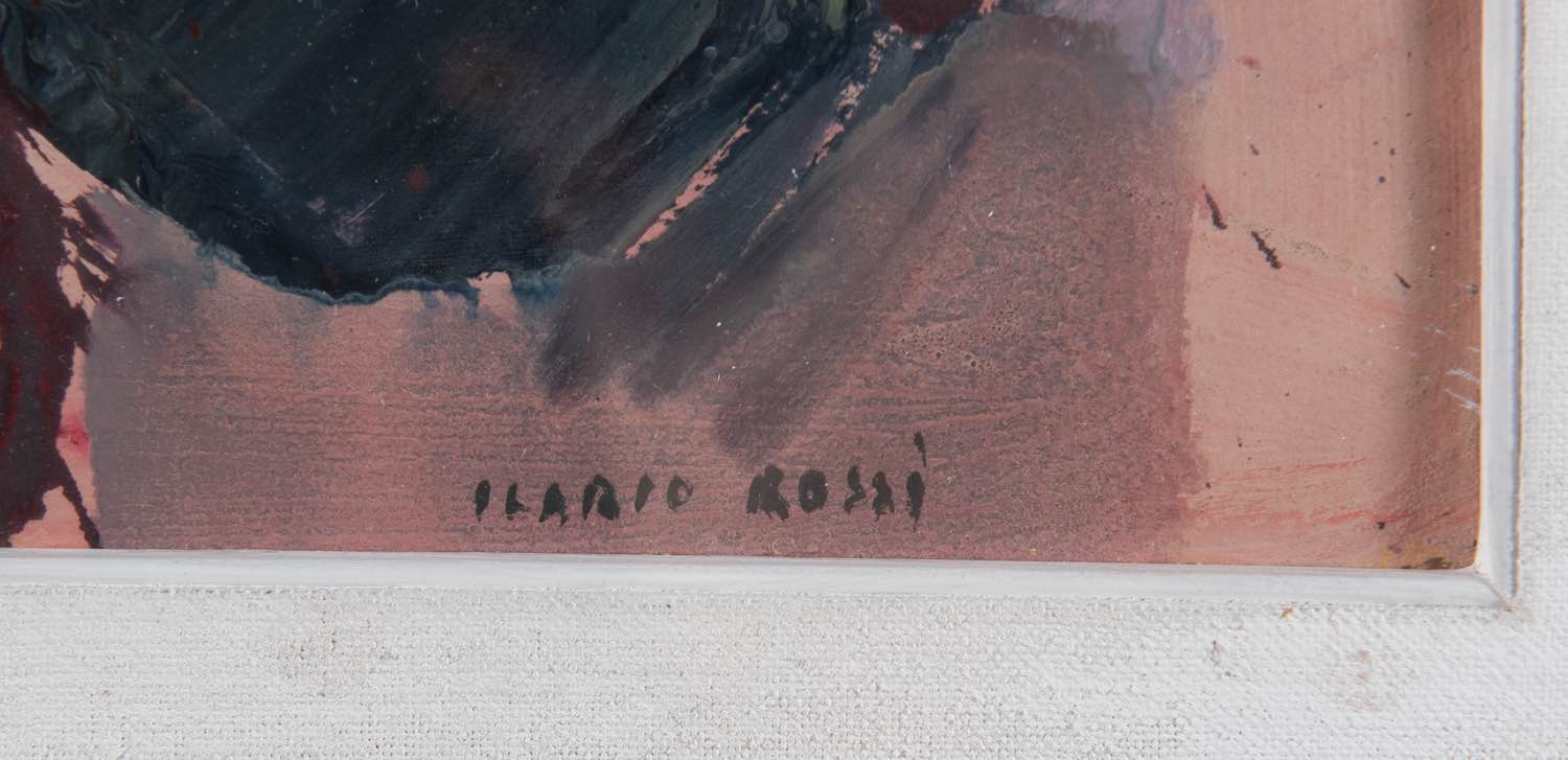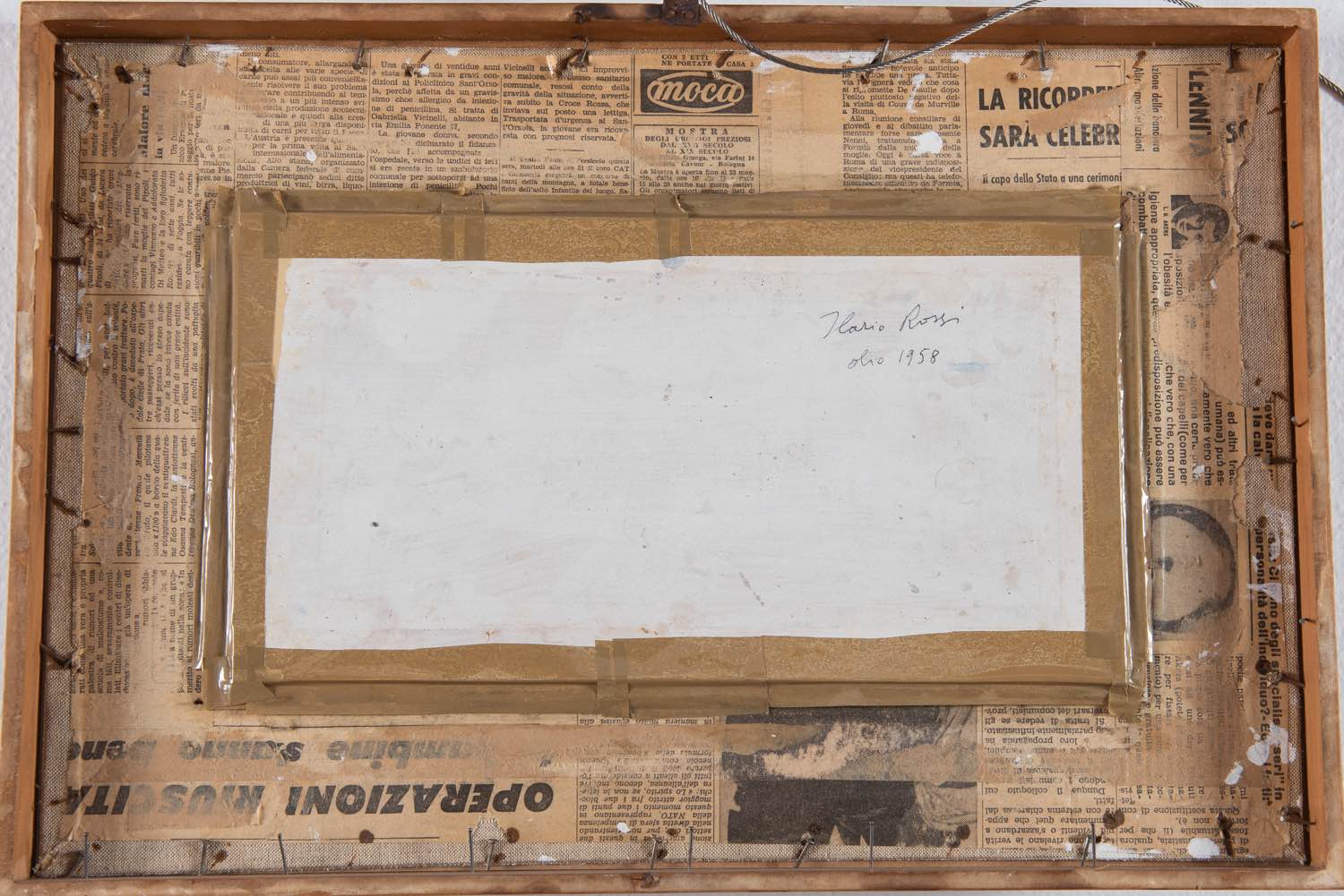 Olio su compensato, firmato in basso a destra Ilario Rossi, al rentro firma, data e tecnica Ilario Rossi/olio/1958, H cm 16x30. Opera accompagnata da certificato di autenticità su fotografia a firma Ilario Rossi.