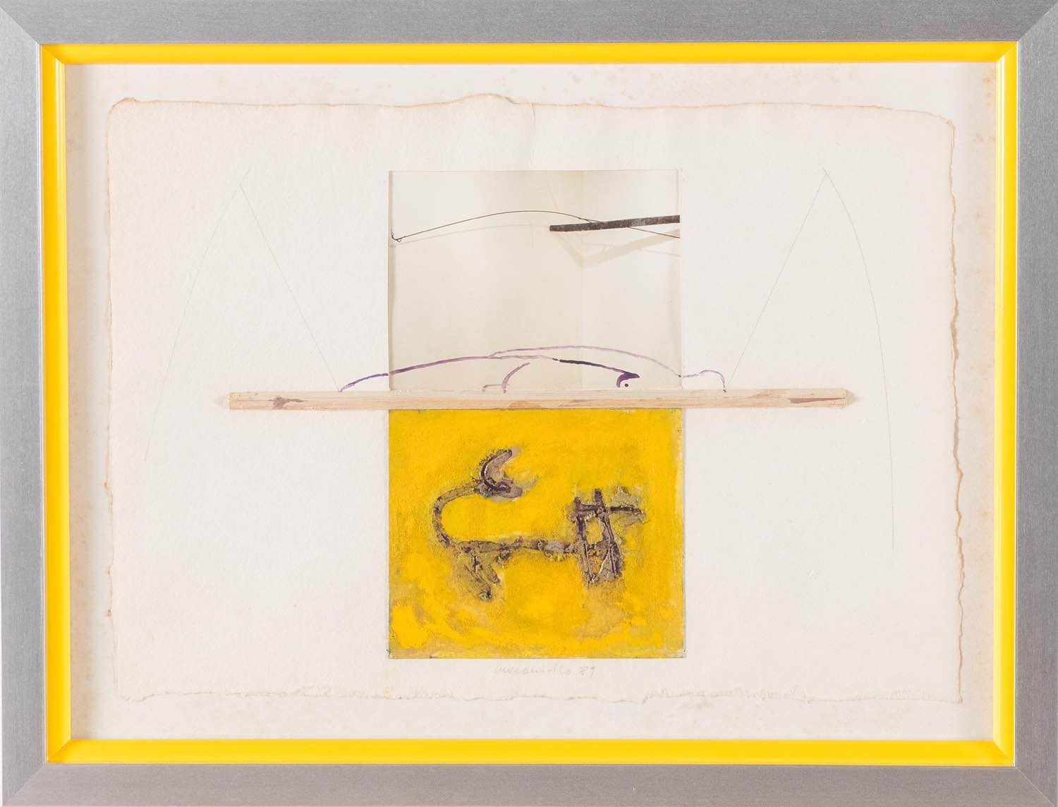 Tecnica mista e collage su carta, firmato e datato in basso al centro Maraniello 89, H cm 26x36 Provenienza: Importante collezione privata - Bologna.