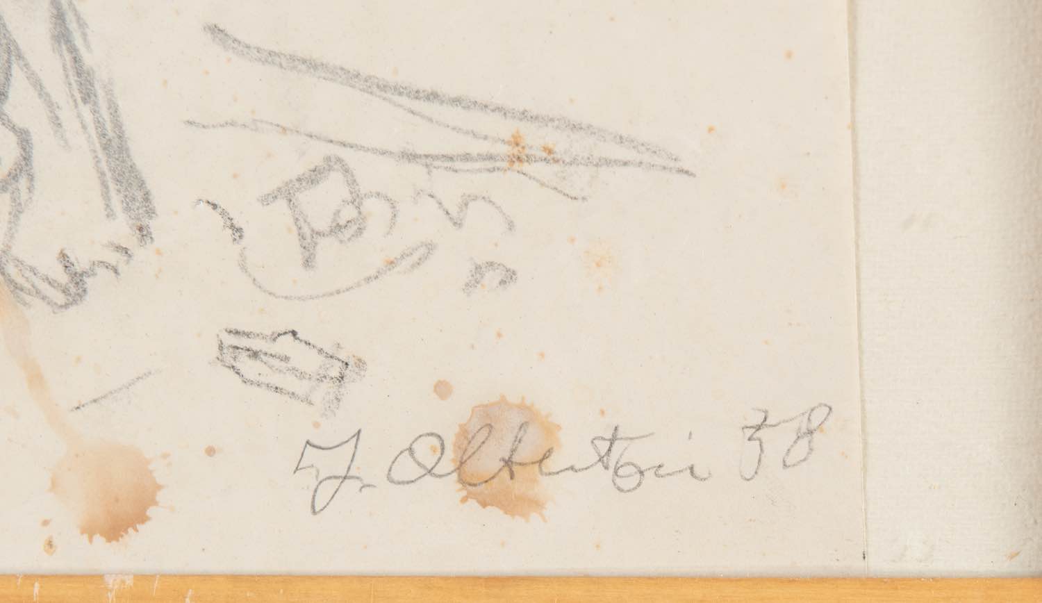 Carboncino su carta, firmato e datato in basso a destra F. Albertoni 58, H cm 45x28.5