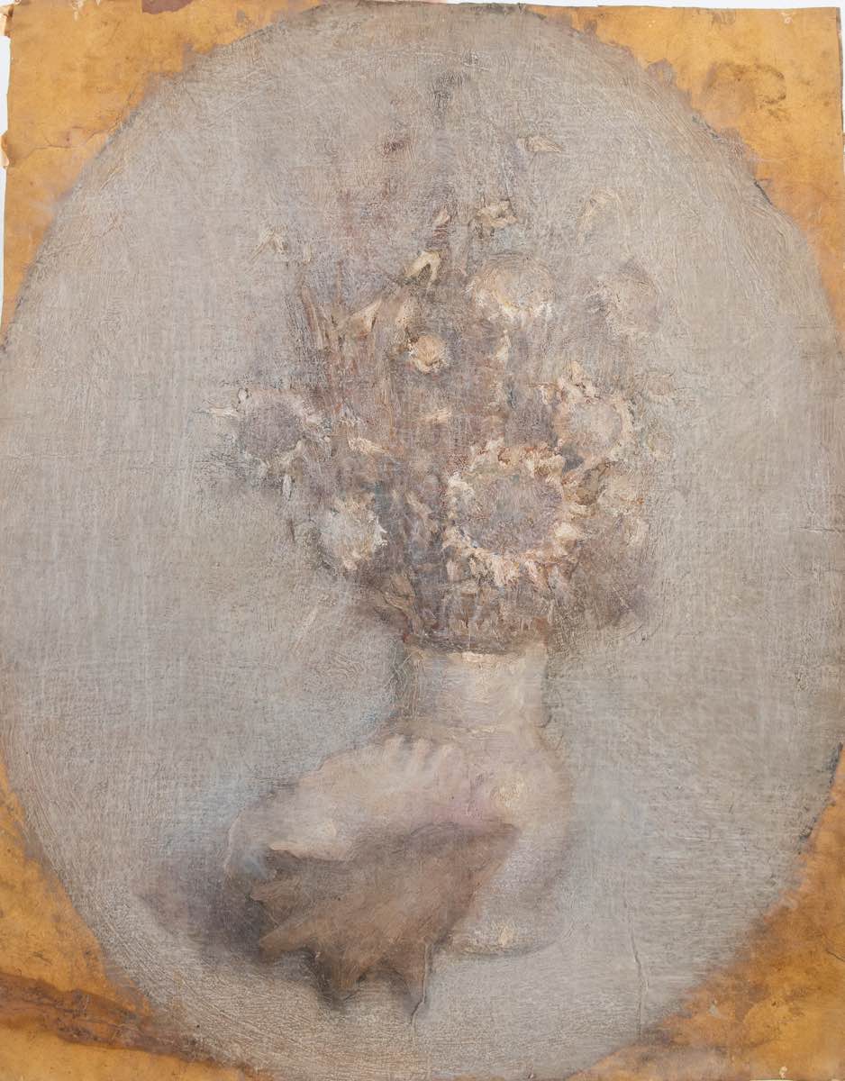 Norma Mascellani, (Bologna, 1909 - 2009), “Natura morta con vaso di fiori e conchiglia”, 1974.
