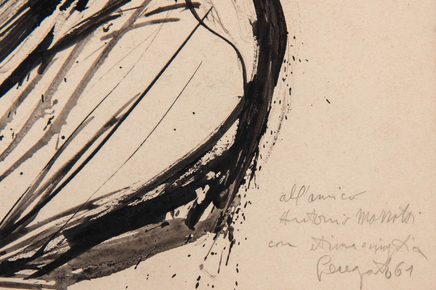 China su cartoncino, reca in basso a destra firma, data e dedica, H cm 35x25