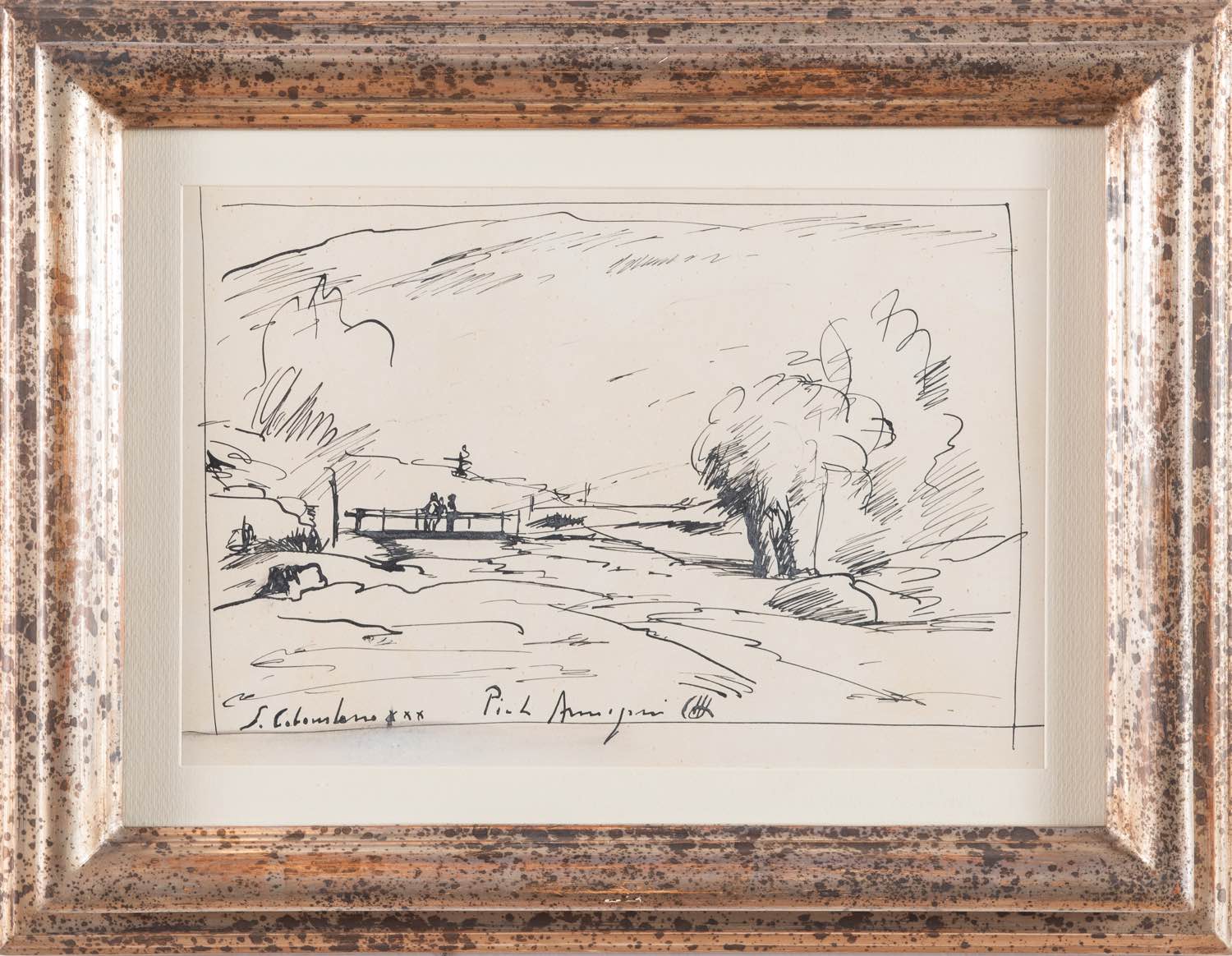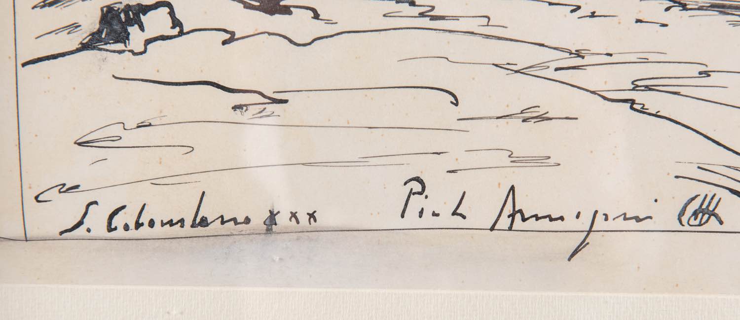 China su carta, firmata e siglata in basso al centro, titolo e iscrizione in basso a sinistra S. Colombano XXX, H cm 20x30