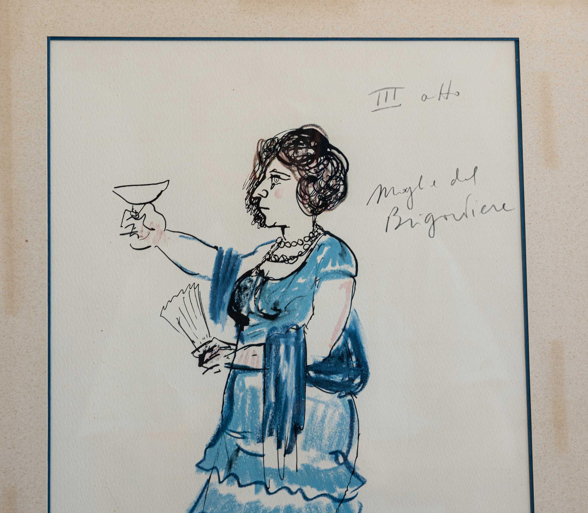 litografia del bozzetto per la realizzazione delle scenografie e dei costumi per la rappresentazione della commedia 'Il Contratto' di Eduardo De Filippo