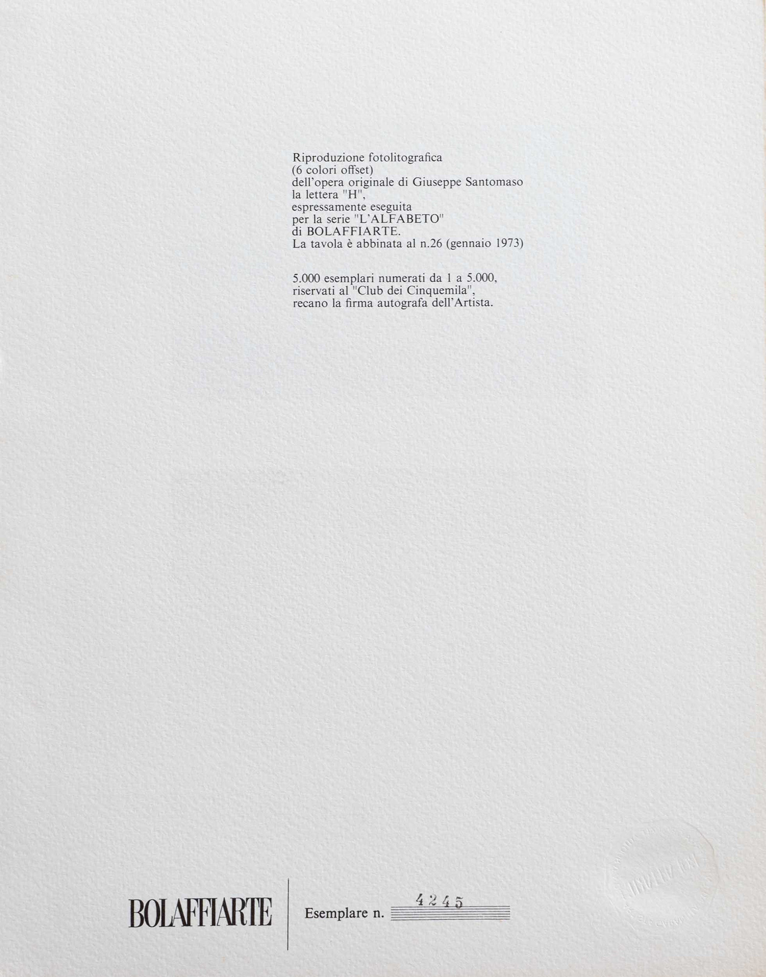 riproduzione fotolitografica. Esemplare n. 4245/5000