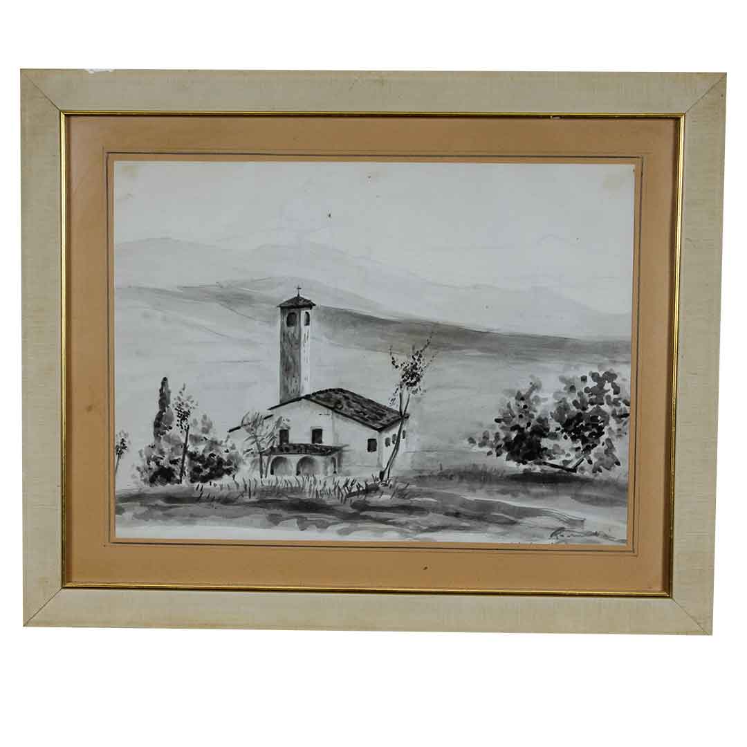 Acquerello in monocromia, su carta, entro cornice firmato Romani