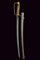 Sciabola da ufficiale (Kyu-gunto), datazione: primo quarto del XX Sec. provenienza: Giappone, Lama a un filo con profonda scanalatura dorsale, habaki in ottone. Fornimento in bronzo parzialmente traforato ed inciso a motivi floreali. Impugnatura in cuoio con trecciola in filo di ottone. Fodero metallico. lunghezza 81.5 cm.