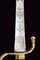 Spadino con interessante lama, datazione: 1800 circa provenienza: Regno delle Due Sicilie, Particolare lama dritta a due fili, prima di sezione triangolare incisa con stemma a tre gigli sotto corona, motto 'VIVE LE ROI', sole, dea della guerra, trofei e motivi floreali, suddivisi da squame, la base firmata 'De La Manufacture / De La Margue à P. Extra-fin à Solingen' e marca 'EXT FIN', la seconda parte verso il debole di sezione esagonale. Fornimento monoelso in ottone, braccio dell'elso e ramo di guardia decorati a nodi, la guardia con estremità a testa di serpente. Impugnatura in legno zigrinato. lunghezza 92 cm.