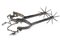 Paio di rari sproni medievali per la giostra, datazione: Fine del XVI Secolo provenienza: Europa centrale, Larghe branche incurvate con intagli e sottilissime scanalature, munite di fibbia e ganci su catenelle. Lungo collo leggermente obliquo di sezione a losanga, ridotta nella parte finale e munito di grande stella a otto punte. Pubblicati in 'Éperonnerie et parure du cheval', Brussels 2005, n. 32, p. 29, Collection de la Boisseliere. lunghezza 28.5 cm.