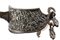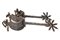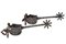 Eccezionale paio di sproni in stile del tardo medioevo, datazione: Seconda metà del XIX Secolo provenienza: Francia, In ferro, dotati di largo arco finemente intagliato con effigi di cavalieri in combattimento, con mascherone e bandiera al centro, il tutto eseguito in bassorilievo; completi di fibbie e ganci intagliati. Muniti di lungo collo dritto decorato con iscrizioni e bande a spire in bassorilievo, stella a otto punte intagliate ed incise a teste di drago. Bellissimo esempio del 'revival spirit' di oggetti medioevali creati nella seconda metà del XIX secolo.Pubblicato in 'Eperonnerie et parure du cheval', Brussels 2005, nr. 26 pag. 26, collezione La Boisseliere. lunghezza 29 cm.