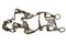 Morso, datazione: XVII Secolo provenienza: Francia, In ferro, con guardie operate ad intaglio, terminanti con voltoi e campanalle tonde articolate su fauci di ceffi animali a tutto tondo, imboccatura fissa con ponticello e scioglilingua, stanghette sempre intagliate a giorno, completo di barbozzale e catenelle. lunghezza 27 cm.