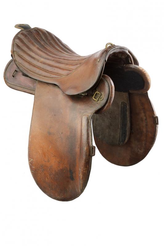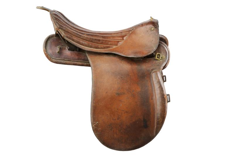 Sella per cavalleria leggera, datazione: primo quarto del XX Sec. provenienza: Impero austro-ungarico, Sella di pratico uso anche per equitazione moderna. Eleganti rifiniture nel seggio, porta sotto il quartierino di sinistra una etichetta col marchio del fabbricante di Klagenfurt, in Carinzia. lunghezza circa 50 cm.
