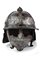 Taschetto a coda di gambero, datazione: secondo quarto del XVI Sec. provenienza: Ungheria, Coppo in ferro in un solo pezzo, ornato a cannellini disposti a raggi culminanti al centro in un fornimento a dischetto dotato di anello. Tesa in ferro appuntita, con margine cordonato liscio e tenuta tramite ribattini, dotata di doppio nasale scorrevole con estremità superiore cuspidata, il nasale esterno dotato di uno grande scudo facciale con intagli per la vista e apertura alla punta per essere fissato sul nasale interno; guanciali mobili, con fori aeratori. Gronda a quattro lame con bordi parzialmente cordonati. Alcuni coietti antichi. Piccoli difetti e mancanze. Raro con il secondo nasale. altezza 23 cm.