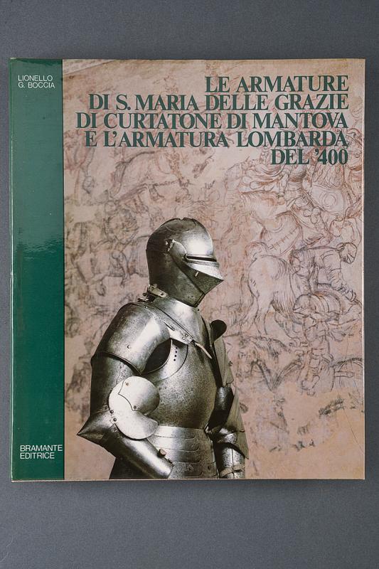 Boccia, Lionello Giorgio, datazione: 1982 provenienza: Busto Arsizio, 'Le Armature di S. Maria delle Grazie di Curtatone di Mantova e l'Armatura Lombarda del '400'; Bramante, Busto Arsizio, 1982; esemplare 1574 di 2000; 304 pagine in b/n e a colori. Copertina rigida, sovracopertina e cofanetto. altezza 32 cm.