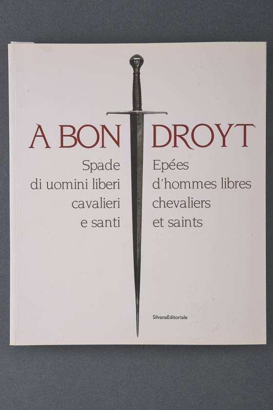 Scalini, Mario, datazione: 2008 provenienza: Italia, 'A Bon Droyt, Spade di uomini liberi, cavalieri e santi'. Edizioni Silvana 2007. Catalogo di 288 pagine con splendide illustrazioni in b/n e colori delle armi esposte al museo archeologico di Aosta nel 2007. Testi molto interessanti scritti in lingua italiana e francese. Brossurato. altezza 28 cm.