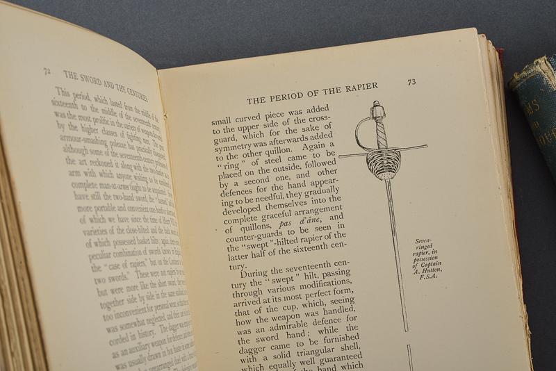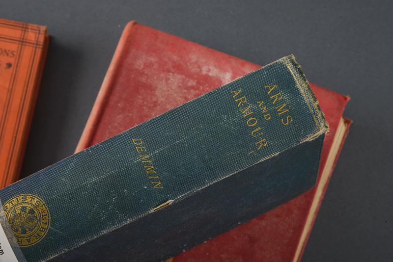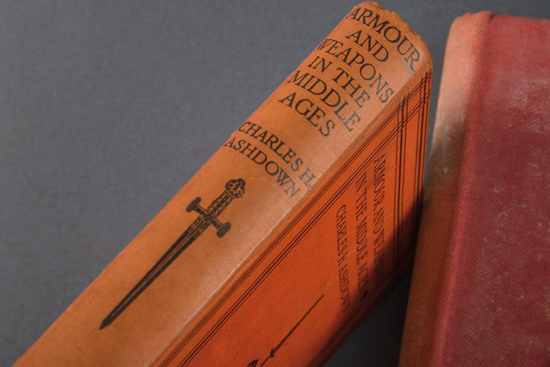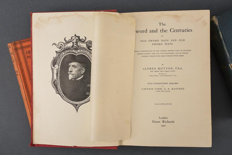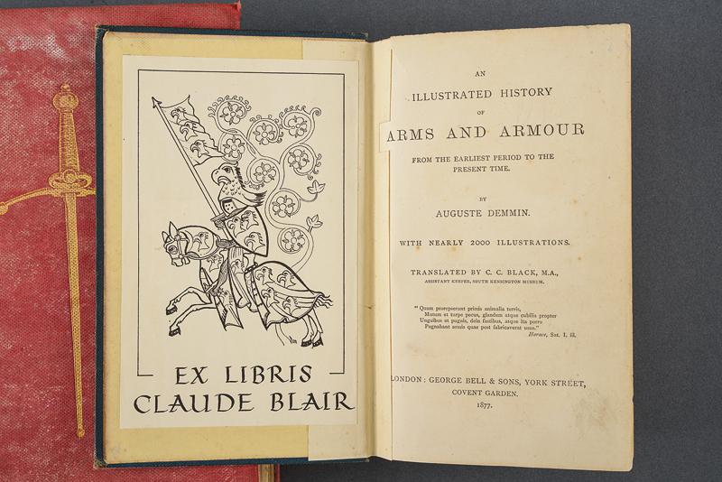 Lotto di tre libri su armi e armature, datazione: XIX/XX secolo provenienza: Inghilterra, 'Armour and Weapons in the Middle Ages', Charles H. Ashdown, 1925; 'An Illustrated History of Arms and Armour', Auguste Demin, London 1877. Entrambi con ex libris 'Claude Blair'; 'The Sword in the Centuries' Alfred Hutton, London 1901. Tutti con illustrazioni in b/n e con copertina rigida telata. altezza 18.5 - 23.5 cm.