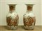 Firmato, datato. Coppia di vasi a tromba in porcellana dipinta con scene di...