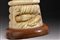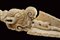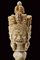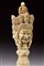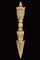 Elegante phurbu riccamente scolpito, datazione: XX Sec. provenienza: Nepal, Interamente in osso di yak. La triplice lama con bordi intagliati e le nervature lavorate a serpenti intrecciati, in rilievo. La grande testa di mostro marino Makara lavorata a tuttotondo, finemente arricchita con tutti gli elementi ben pronunciati e con le squame realizzate in rilievo. I nodi infiniti centrali dell'impugnatura con decoro a zigrinato e petali. Il pomo a triplice testa di Mahakala (Dharmapala=protettore), finemente lavorato in rilievo con pregiati dettagli quali le bocche traforate complete di lingua e denti aguzzi, gli orecchini che fungono da elementi connettivi fra le tre figure e la grande corona di teschi. Al sommo un vajra intagliato e parzialmente traforato. Completo della sua base di supporto (alt. 7,5 cm) in osso intagliato e legno. Lo scasso per l'inserimento della lama rinforzato in metallo. Il phurbu (o phurba) letteralmente significa 'chiodo', non è un'arma ma un oggetto rituale spirituale. E' generalmente associato con il buddhismo indo-tibetano, il Bön, e le tradizioni vediche indiane. lunghezza without base 29,3 cm.