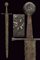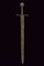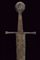 Spada medievale, datazione: primo quarto del XII Sec. provenienza: Germania, Larga lama dritta a due fili con leggero sguscio centrale e resti di iscrizioni; impugnatura con codolo trapezoidale, elso dritto con bracci di sezione tonda che si ingrossano verso le estremità, grande pomo ovale. Su un lato resti di decorazioni in argento a raggi, il lato opposto con pochissimi resti. Di buona consistenza e di bella forma compatta. Spada del tipo X Oakeshott. Molto simile alla spada Witham. Vedi Oakeshott, pag. 34 Cat. X 15 datata 1100-1150. Vedi anche 'Selected Antiques Arms And Armour - The Abildgaard Collection', dove è illustrata, a pag. 36/7 no. 1.10, con testo. Il libro è incluso nel lotto. lunghezza 89.3 cm.
