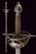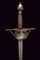 Spada da lato, datazione: 1620 - 1640 provenienza: Germania, Lama dritta di sezione esagonale, con intaccature e qualche dente in punta, recante al forte su entrambi i lati il marchio a testa di re ben visibile e resti del motto 'SOLI DEO GLORIA' (non chiaramente leggibile). Fornimento in ferro. Le due robuste valve con decoro a rombo e sforature, collegate tramite un elemento di raccordo ai ponti e agli anelli sull'elso. I bracci dritti e con terminazioni controcurvate sul piano di lama e bottonate. Impugnatura con teste di moro e trecciola in ferro (più tarda?). 'Soli Deo Gloria' è uno dei cinque Sola (principi fondamentali) della Riforma Protestante. Interessante esemplare forse risalente alla Guerra dei Trent'anni. lunghezza 109,5 cm.