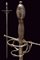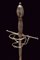 Spada da lato, datazione: 1630 circa provenienza: Olanda, Robusta lama di sezione a losanga con tallone e ricasso schiacciati; fornimento in ferro a due ponti con nodi costolati al colmo, bracci dritti allargati e tronchi alle estremità, controguardia a rami incrociati, grande pomo a oliva con basetta e bottone. Impugnatura in legno con trecciola in filo di ferro, le teste di moro mancanti. lunghezza 120 cm.
