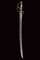 Spada alla vallona, datazione: Fine XVII - Inizio XVIII Sec. provenienza: Europa, Lama curva di sezione lenticolare, a un filo e controfilo, recante sottile sguscio al forte. Sul lato di terza resti di incisioni con una croce, altri fregi, tracce di un iscrizione ('...M'), alla base punzone a croce di malta; sul lato di quarta una simile decorazione, in stato di conservazione leggermente migliore (visibili le lettere 'AHNM'), tracce di dorature e due punzoni a croce maltese. Fornimento in ferro a due anelli privi di valva. Due rami di guardia e un ramo di raccordo. Il lato posteriore con passante di presa per il pollice. Impugnatura con rivestimento in trecciola metallica (più tarda?) e con ghiere in ottone. Pomo in ottone tipicamente lavorato a testa di mostro. lunghezza 88 cm.