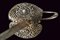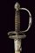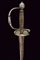 Spadino da mancino, datazione: fine del XVIII Sec. provenienza: Francia, Corta lama di sezione triangolare con facce incavate. Fornimento in argento, finemente inciso e traforato a motivi floreali. Impugnatura in legno rivestito di trecciola e teste di moro. Fodero in legno rivestito di pelle bianca con cappa in argento decorato en suite, puntale mancante. Piccoli danni. lunghezza 77.5 cm.