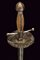 Bello spadino, datazione: Prima metà del XVIII Secolo provenienza: Germania, Lama a due fili di sezione esagonale, con scanalatura al forte. Fornimento in ferro con coccia circolare, leggermente convessa, riccamente intagliata, incisa e traforata a motivi floreali dal lato esterno. Massello, pomo e ghiere faccettati, bracci dell'elso a 'S' con estremità a nodo faccettato. Impugnatura in legno rivestito di trecciola in filo di rame e con doghe e ghiere in ferro. lunghezza 107 cm.