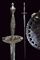 Spadino, datazione: 1800 circa provenienza: Napoli, Lama di sezione triangolare con facce incavate, la base allargata; bellissimo fornimento in acciaio riccamente decorato con perline d'acciaio, la coccia ovale anch'essa traforata. lunghezza 91 cm.