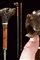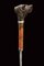 Bastone animato, datazione: primo quarto del XX Sec. provenienza: Europa, Lunga lama a due fili di sezione leggermente a losanga, tallone rettangolare. Impugnatura e fusto in bambù. Pomo in corno a testa di segugio con mandibola movibile e munita di molla. Il collare dipinto in bianco. Alla chiusura ghiere argentate. lunghezza 87.5 cm.