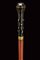 Bastone animato, datazione: 1900 circa provenienza: Francia, Robusta lama di sezione quadra con illeggibili resti di firma. Impugnatura in corno con pomo sferico decorato con intarsi in madreperla (alcune mancanze). Fusto cilindrico in legno con ghiera in ottone e puntale metallico. lunghezza 82 cm.