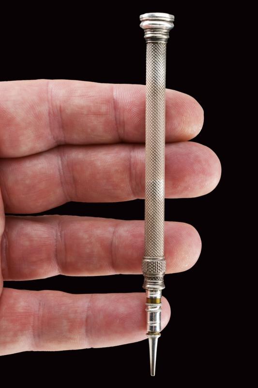 Interessante bastone da passeggio con matita in argento e sigillo