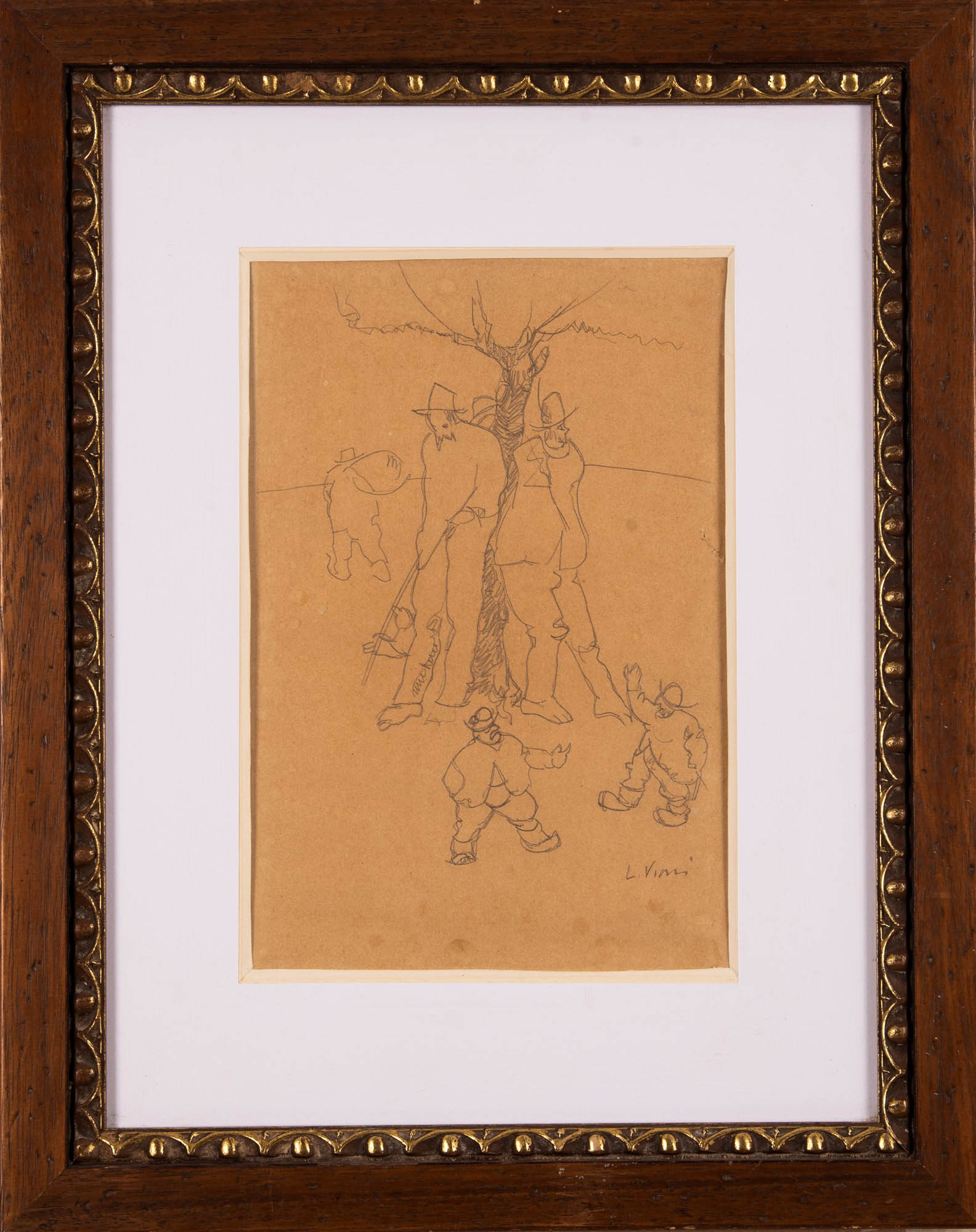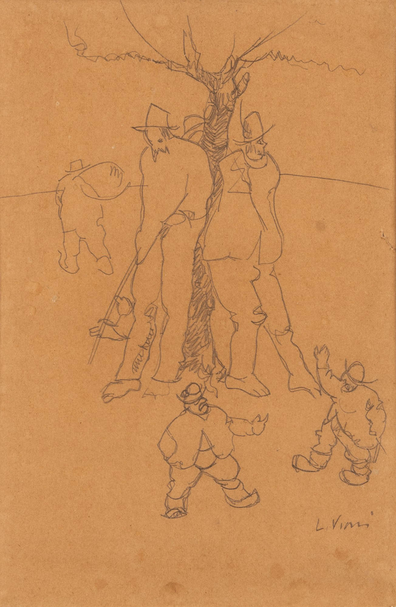Lorenzo Viani (Viareggio, 1882 - Roma, 1936) Strada con viandanti Matita su carta cm 32x21 e cm 53x42