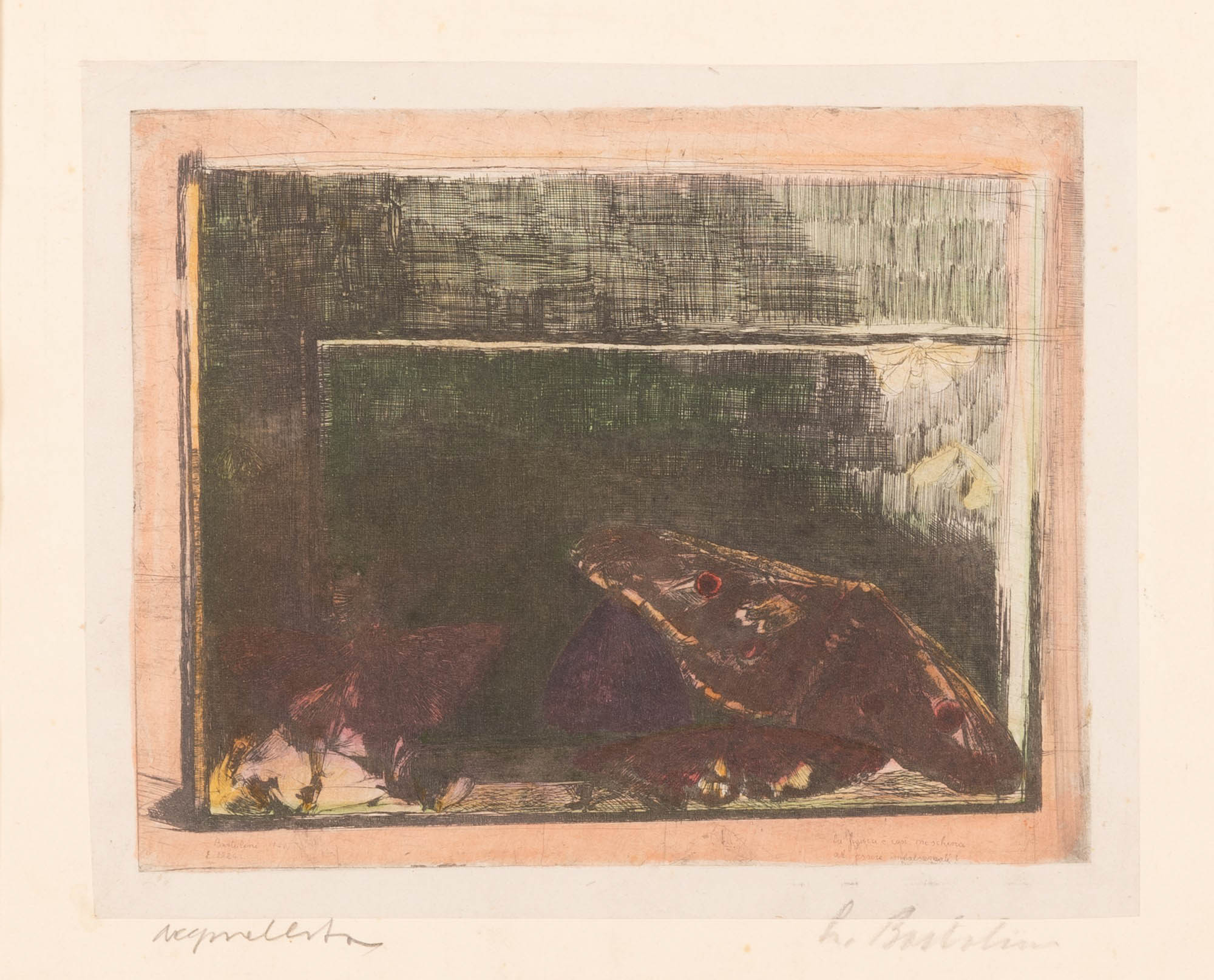 Luigi Bartolini (Cupramontana, 1892 - Roma, 1963) Farfalle Acquaforte cm 26x32 e cm 45x50