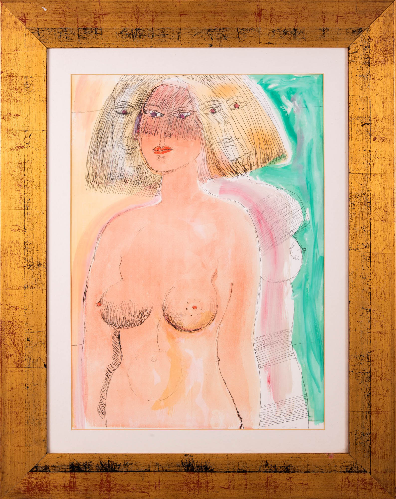 Litografia ritoccata a mano dall'artista raffigurante figura femminile